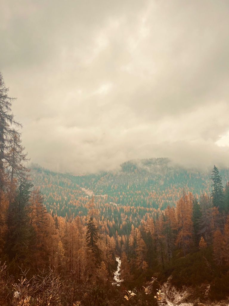 We estimated that it would take us about two and a half hours to get to Sorapis. My personal recommendation is to start in the morning, especially if you’re hiking in autumn, so you can return before dark, as some parts of the path can be slippery and difficult to walk. The beginning of the path is also the easiest part. It’s a very flat section before the steep incline, with beautiful views of the large colorful forests.